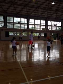 9月13日土曜日に、サタデースクールが行われました。今回は、東京八王子トレインズというプロのバスケットられないボールチームの方が講師でした。ボールの扱い方、ドリブルのやり方、シュートのやり方など、とても丁寧に教えてくださいました。