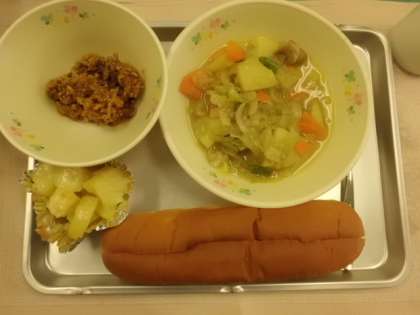 豚ひき肉とみじん切りにした玉ねぎ・人参・ピーマン・にんにく・セロリを炒め、