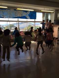1年生の国語の授業です。「くじらぐも」の授業です。子供たちはこの学習が大好きのようです。