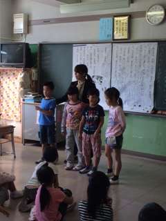 1年生の国語の授業です。「くじらぐも」の授業です。子供たちはこの学習が大好きのようです。