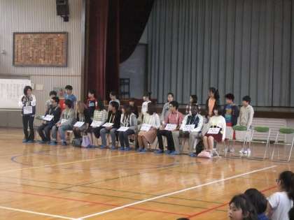 本校では創価大学の留学生をお迎えして、今年度も国際理解教育を行いました。3時間目は体育館で全体会を行いました。本校の校歌を聞いてもらい、そのあと、留学生の方々から自己紹介をしてもらいました。次に、みんなで歌おうということで歌を1曲歌い、そのあと全員でじゃんけん列車をしました。