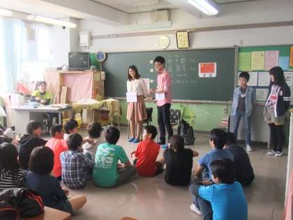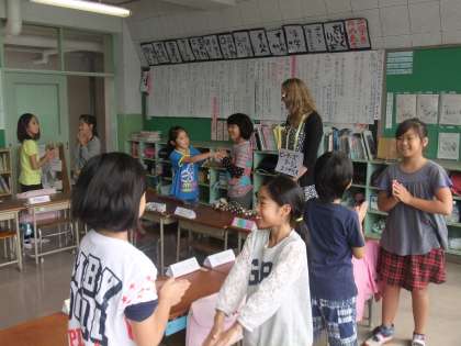本校では創価大学の留学生をお迎えして、今年度も国際理解教育を行いました。3時間目は体育館で全体会を行いました。本校の校歌を聞いてもらい、そのあと、留学生の方々から自己紹介をしてもらいました。次に、みんなで歌おうということで歌を1曲歌い、そのあと全員でじゃんけん列車をしました。