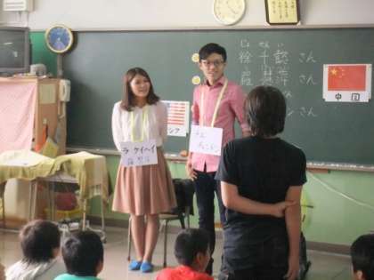 本校では創価大学の留学生をお迎えして、今年度も国際理解教育を行いました。3時間目は体育館で全体会を行いました。本校の校歌を聞いてもらい、そのあと、留学生の方々から自己紹介をしてもらいました。次に、みんなで歌おうということで歌を1曲歌い、そのあと全員でじゃんけん列車をしました。