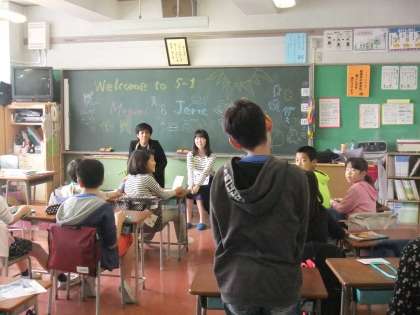 4時間目は各クラスに分かれてさまざまな交流を行いました。留学生の方に英語で自己っ紹介したり、英語で質問するクラスもありました。すごいですね。各クラスいろいろ工夫をして交流を深めていました。