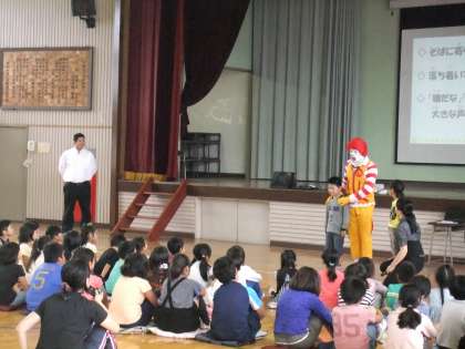 10月2日はセーフティー教室でした。4・5・6年生は携帯電話・スマートフォンの使い方についてNTTドコモの方から、1・2・3年生は不審者対応訓練をマクドナルドの方からしていただきました。