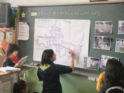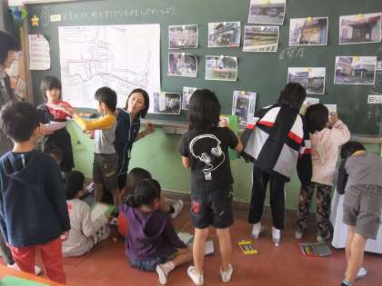 先日町の発見に行った2年生が教室でまとめをしていました。