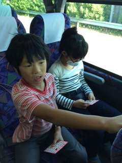 ただいま、高速道路が渋滞中で、バスの中でゲームをしています。