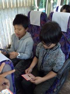 ただいま、高速道路が渋滞中で、バスの中でゲームをしています。