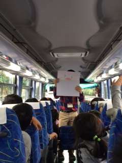今日から一泊二日で、あさひ学級の校外宿泊学習が行われます。全員元気です。出発式も立派にでき、バスに乗りました。