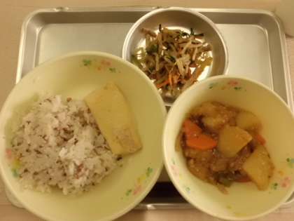もやし炒めとじゃがいものそぼろ煮、いかの七味焼きも人気があり、おかわりの列ができているクラスがありました。