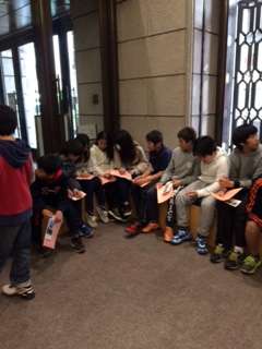国会議事堂の見学が終わり、憲政記念館の見学も終わり、お昼ご飯も食べ終わり、最後の見学場所、東京証券取引所の見学も終わり、今、帰りのバスの中です。写真は、東京証券取引所の見学の様子です。