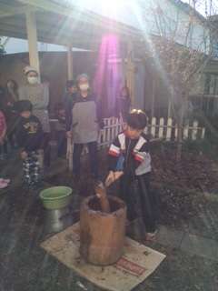 1月9日土曜日、餅つき会を開催しました。たくさんの保護者の方々と地域の方々、たくさんの子供たち、教職員、総勢97名のおかげで無事終わりました。ありがとうございます。