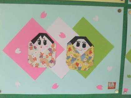 昨日はひな祭りでしたね。あさひ学級の掲示板には図工の時間に作った「おひなさま」がきれいに飾ってありました。とても素敵です。