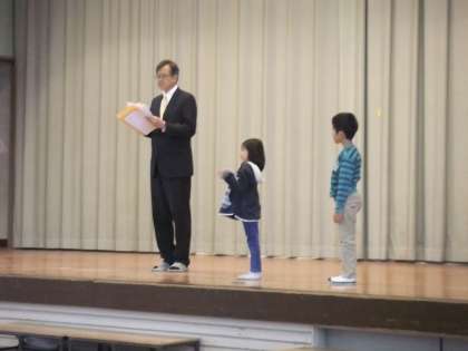 今週の全校朝会で読書の目標達成表彰がありました。2年生、全員目標達成です。