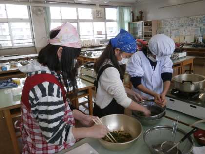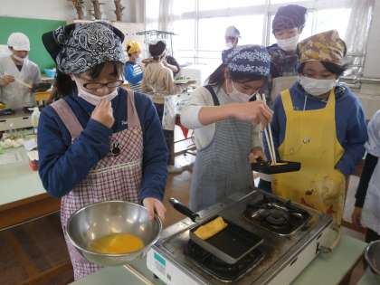 先日、6年生が家庭科の調理実習でお弁当作りを行いました。栄養士さんがたくさん指導してくださいました。子供たちもよく頑張っていました。