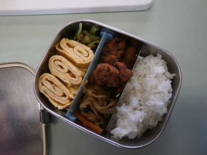 先日、6年生が家庭科の調理実習でお弁当作りを行いました。栄養士さんがたくさん指導してくださいました。子供たちもよく頑張っていました。