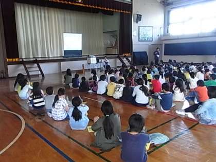 今朝は、全校児童が体育館に集まり、たてわり班の顔合わせと全校遠足に向けての打ち合わせを行いました。