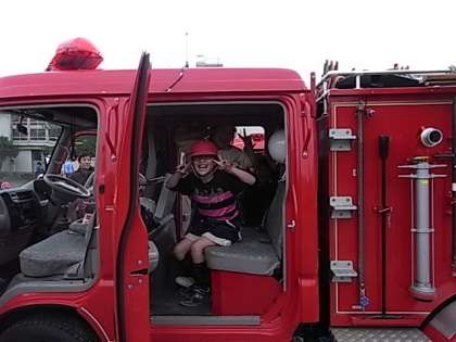 本物の消防車の大きさに子供たちは圧倒されていました。