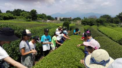 茶摘み体験中です。