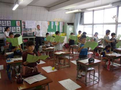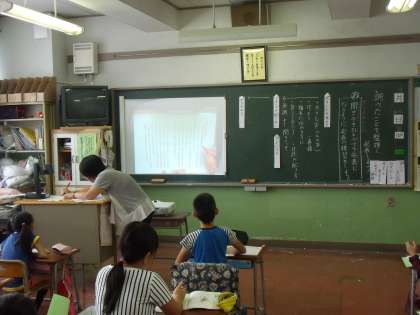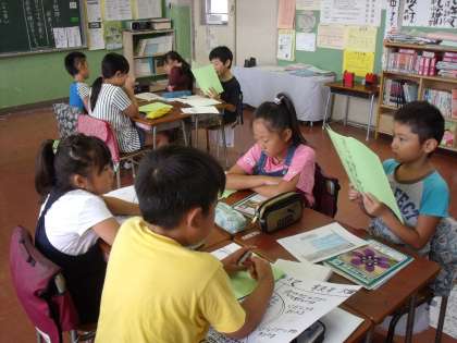4年生は、国語の「手と心で読む」の学習を踏まえ、目の不自由な方が生活しやすくなるための工夫を調べ、発表する準備を進めています。