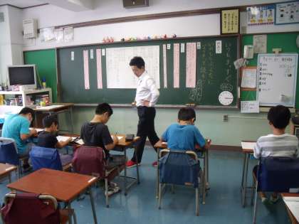 あさひ学級では、グループ学習で、昨日の音読発表会で読んだ「いつもまっすぐ(いのししぶんた)」の詩の読み取りをしています。