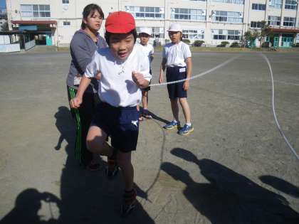 準備運動が終わったらすぐに大縄跳びです。