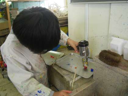 丸い石に絵の具で好きな色を付けて、ドライヤーで乾かします。