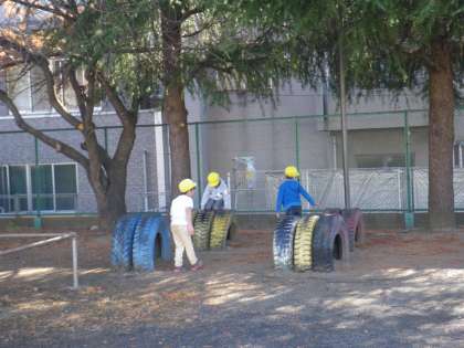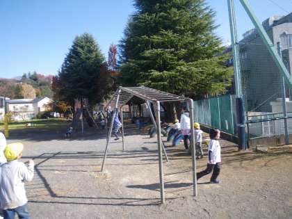 幼稚園にはない遊具や築山、広いグラウンドで目一杯あそんでいました。