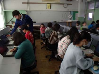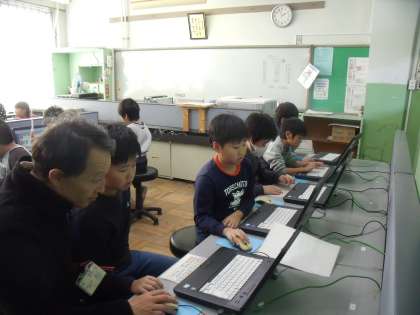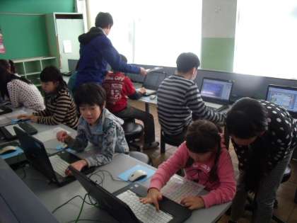 今日は、パソコン室に集まって、名刺作りをしています。