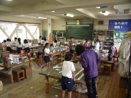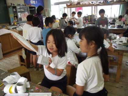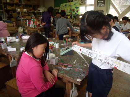 でき上がった児童同士で、「映画」を互いに見合っています。