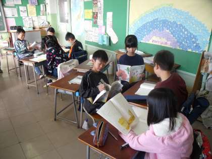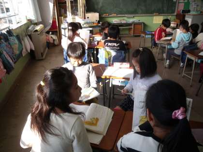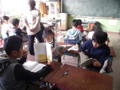本校の研究では、「音声言語活動を取り入れた指導」が研究の大きな柱ですので、日常的に音読に力を入れています。【校長】