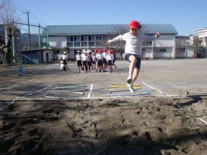 3年生が体育の授業で走り幅跳びに取り組んでいます。