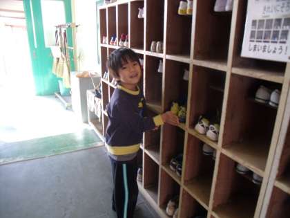 校長がうるさく言わないでも、ほとんどの子は、靴を揃えて入れることは習慣化しています。