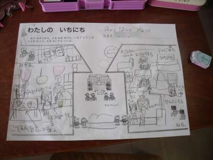 「わたしのいちにち」というプリントにできるようになったことを書き入れています。