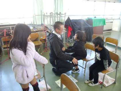 和太鼓の台数は限られていますので、中には副校長の腹太鼓で練習している子も。【校長】