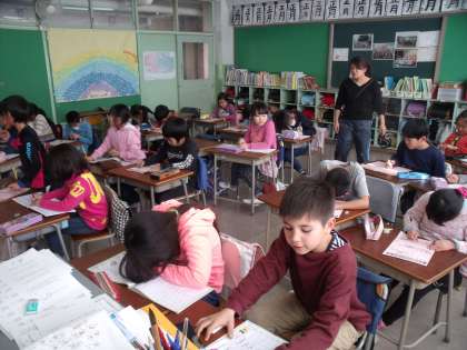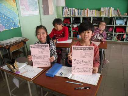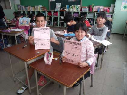 3年生の教室に入ると、子供たちが3学期の目標を紙に書き込んでいました。