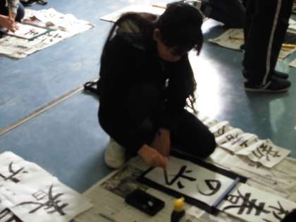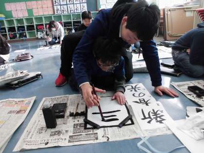 一文字ずつ練習して、先生に見てもらい、上手にかけていたら最後に条幅で清書となるようです。
