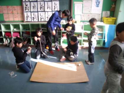 こちらも、生活科の学習でお正月遊びをしていました。