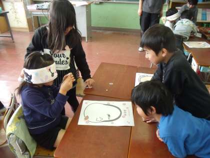 2年生は福笑いです。
