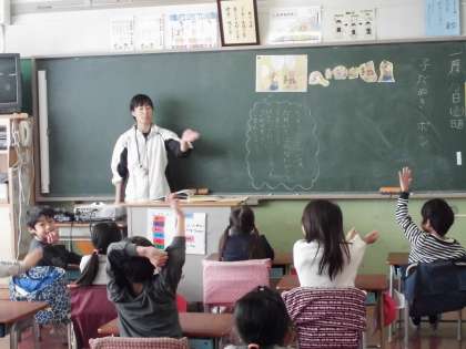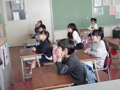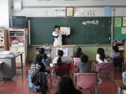 担任が紙芝居風にお話を読んでいました。