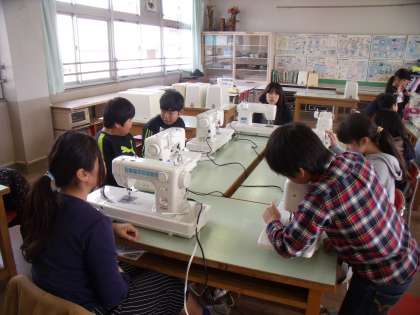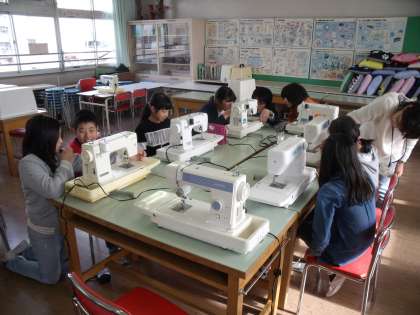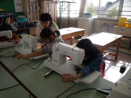 今度は、自分たちで家庭科の時間にミシンを操作する番です。