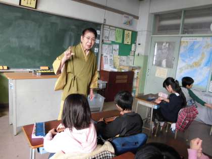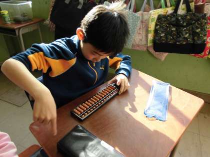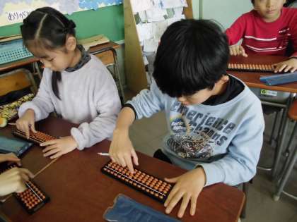 そろばんは珠算協会が講師の先生を派遣してくれますので、講師の先生のご指導を受けて授業を進めました。