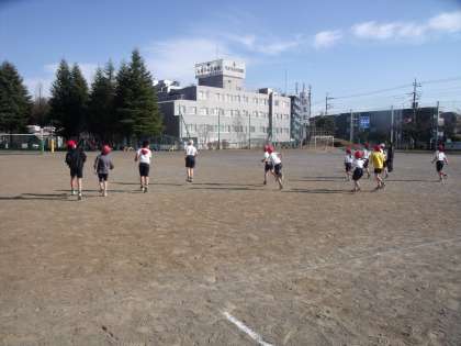 ダッシュをしたり、スキップをしたりして体を温めます。