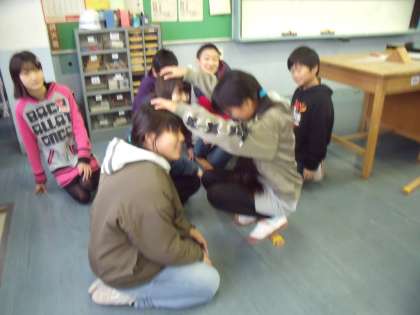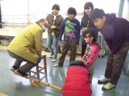子供たちの力でも、見事に校長の体が持ち上がります。