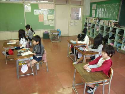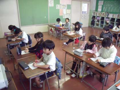 2年生が、算数の時間に「大きな数」に関する問題を解いています。