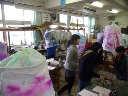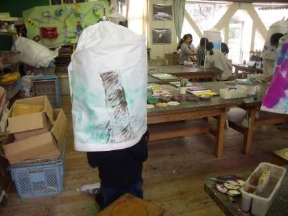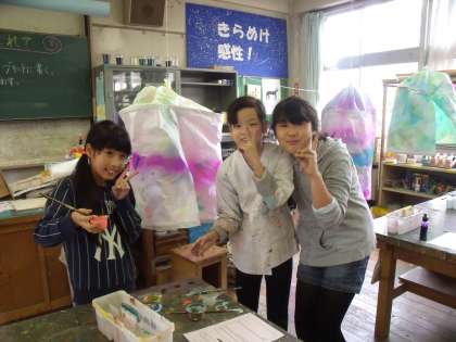 図工室に行ってみると、「白い装置」がたくさん吊り下がっています。