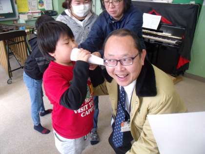 しかし、一生懸命なあまり、ミニメガホンを使って相手の耳もとにささやくはずが、だんだんと大きな声に。