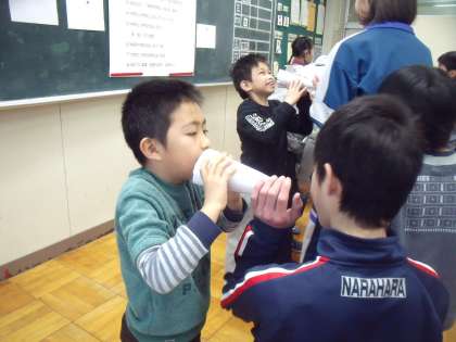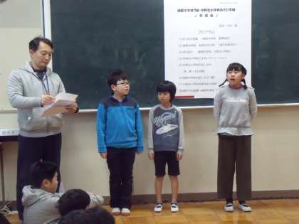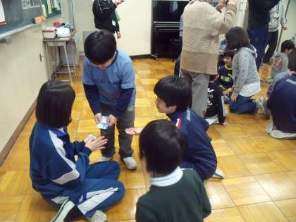 ゲームが終わった後も、余った名刺を自発的に中学生や楢原中の先生方に渡す子もいるなど、自然に交流を深めることができました。【校長】