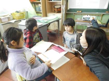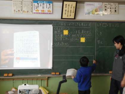 自分の考えを友達と交流したり、前に出て自分の考えを発表したりしています。