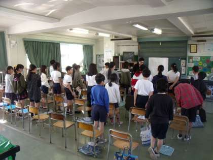 6年生は、音楽室に行って、6-1の子たちと一緒に卒業関係の歌の練習をしています。